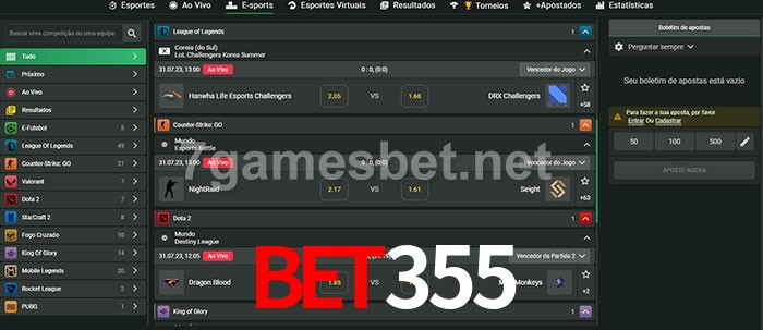 O Bet355 oferece uma grande seleção de opções de apostas em e-sports com probabilidades competitivas